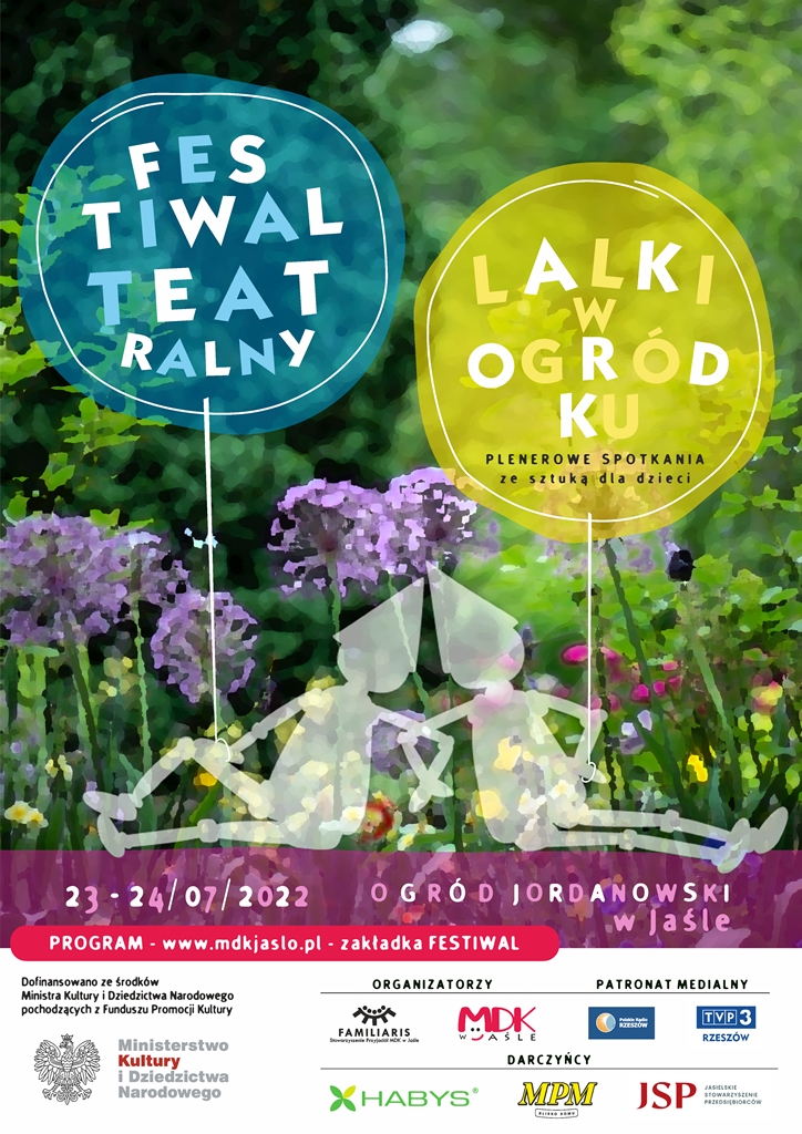 W dniach 23-24 lipca 2022 r. w centrum Jasła, na terenie Ogrodu Jordanowskiego zwanego przez mieszkańców potocznie „ogródkiem”, odbyło się niecodzienne wydarzenie, w którym wzięło udział ponad pół tysiąca miłośników teatru lalkowego. To niebywały sukces i radość, że ten rodzaj teatru znalazł tylu odbiorców, którzy pomimo figli płatanych przez pogodę odwiedzili w tym czasie festiwal nazwany przewrotnie „LALKI W OGRÓDKU – czyli plenerowe spotkania ze sztuką dla dzieci”.