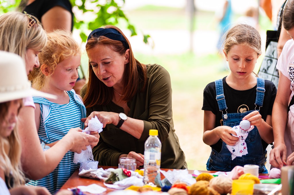 W strefie festiwalowej czynnej w przerwach między spektaklami dzieci mogły własnoręcznie wykonać swoją lalkę szmaciankę i zabrać ją na pamiątkę do domu, mogły bez ograniczeń robić ogromne bańki mydlane, wykonać malowidło na kilkudziesięciu metrach folii rozwieszonej między drzewami Ogrodu, a rodzice w tym czasie mogli odpocząć na leżakach rozmieszczonych w Ogrodzie, relaksować się i prowadzić rozmowy m.in. o sztuce teatru lalek, jego sile oddziaływania na najmłodszego widza i roli, jaką pełni w rozwoju dziecięcej wyobraźni.